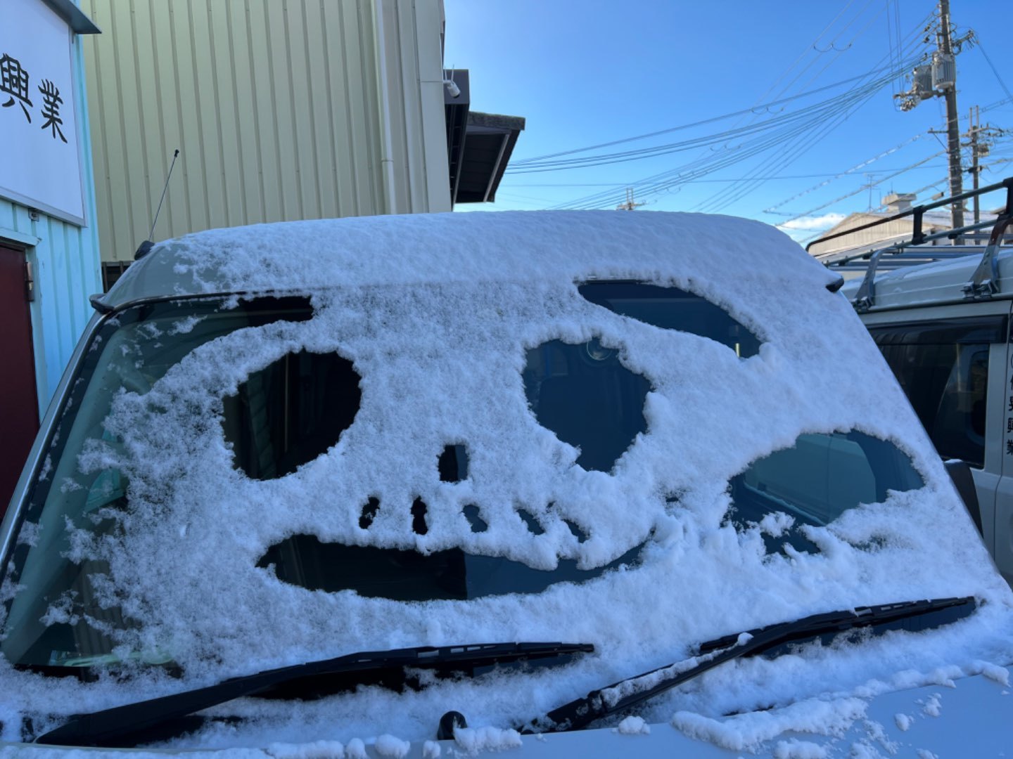 今日出勤すると昨日夜勤があったグループが雪に落書きを残していました😂