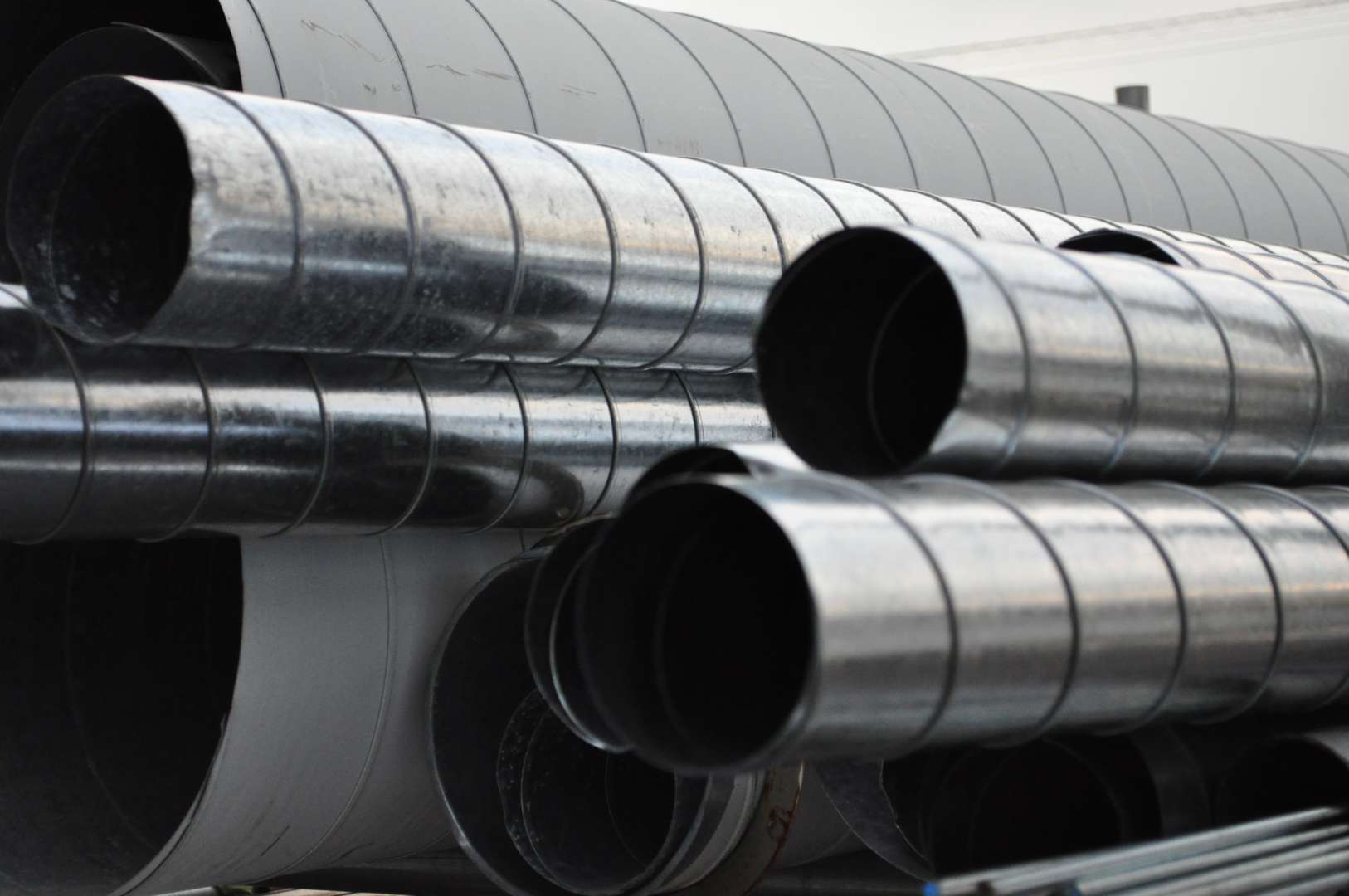 スパイラルダクトの構造の鍵となるのは、側面の接続にあります。帯状の鉄板を機械で巻き込む際、その両端に特殊な折り目(ハゼ)を成形し、それを螺旋状に強力に噛み合わせながら管を形成していきます。この技術により、現場での溶接やフランジといった継手を多用することなく、長尺で均一な強度を持つダクトを連続的に製作できるメリットがあります。この独自の工法により、高い気密性を保ちながら、軽量で丈夫なダクトを提供することが可能になっています。